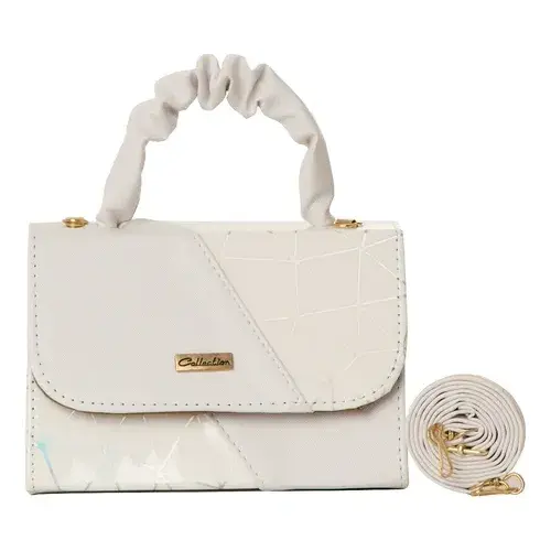 Borsa a Tracolla Niki Bianca di Fana Fashions per Donne, in Pelle PU Geometrica con Decorazione a Catena, Nuova Stagione Elegante