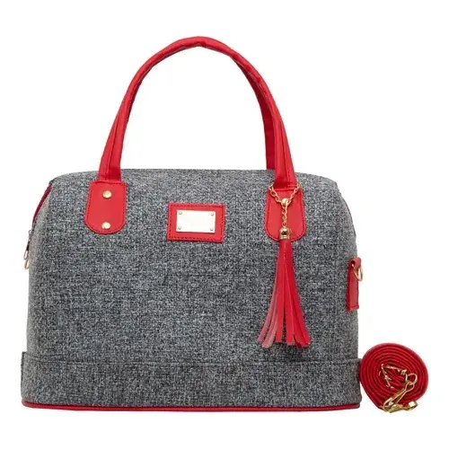 Fana Jordin borsa da donna in juta rossa eco-friendly di medie dimensioni tessuto di cotone con motivo a fiore stampato per la conservazione degli alimenti