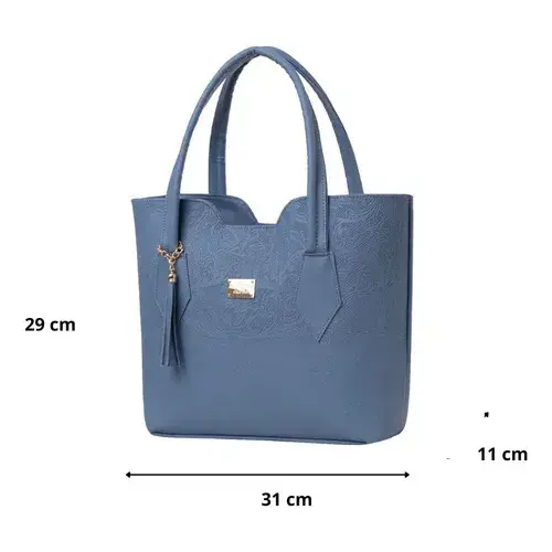 Fana Kailila Women's Handmade Blue Tote Bag Zippered PU Fashion Bag with Polyester Lining Custom Logo