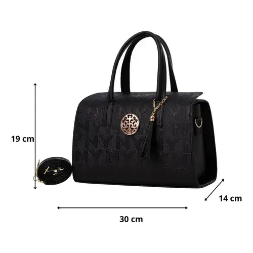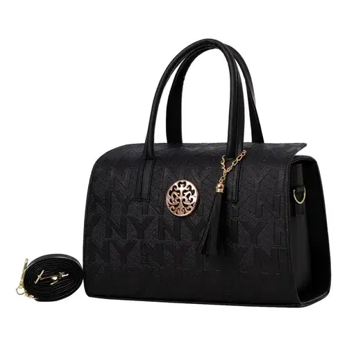 Fana Luciana Women's Luxury Tote Handbag Black Fine Saffiano Print with Large Capacity Zip Closure Two Handles Diamond Decor