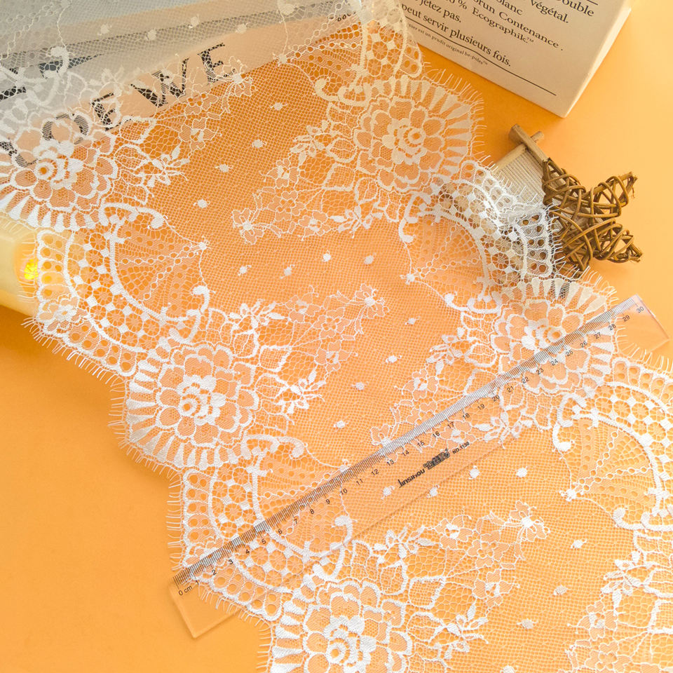Fancy 29.5 cm Wide Knit Nylon Lace Ribbon White Vintage Design Corded Lace Trimming With Eyelash
