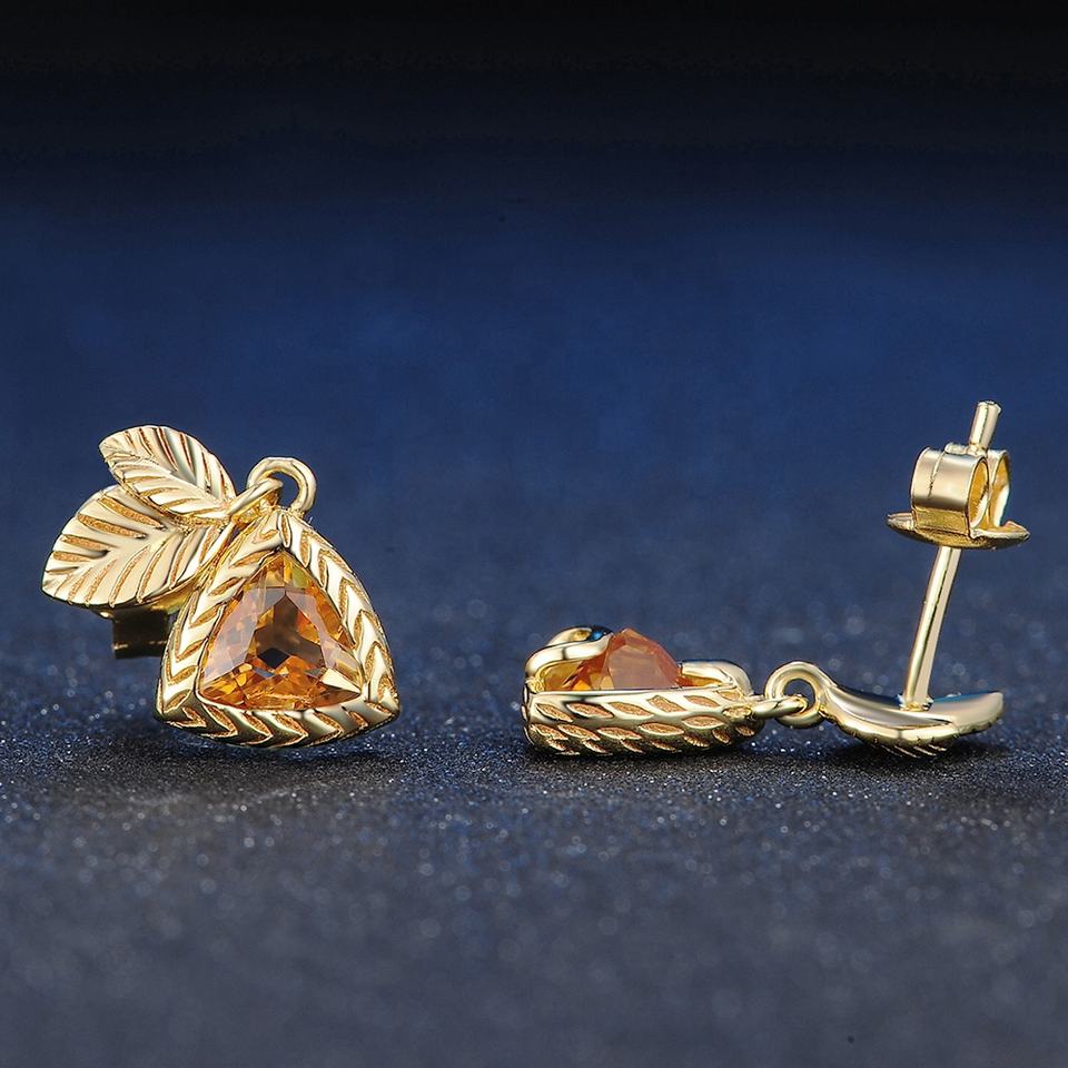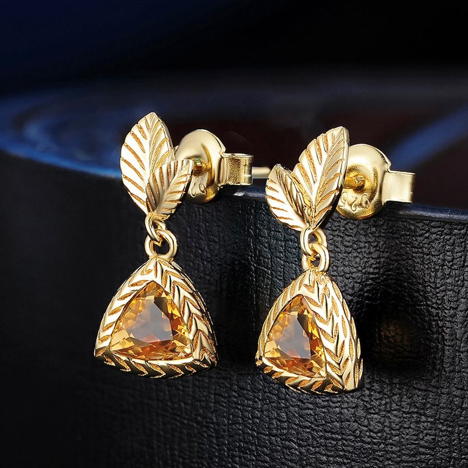 Fancy Gioielli 14K Placcato Oro 925 Triangolo Cut Naturale Della Pietra Preziosa di Colore Giallo Citrino Orecchini di Goccia EI009