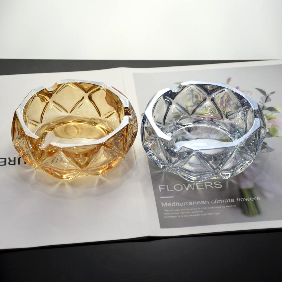 Fantasioso vetro diamante taglio posacenere grande calibro Bar affumicatoio addensato semplice stile nordico placcato ambra piatto di fumo