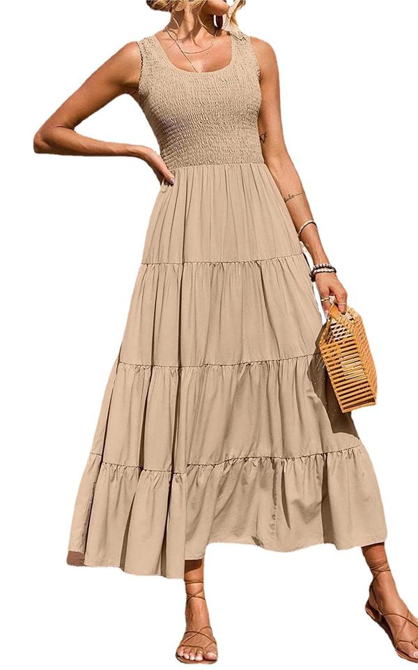 Fantasia cresciuta maniche a sbuffo sole senza maniche gonna stampata Gawon donna Anrabess Casual ampio prendisole abito lungo