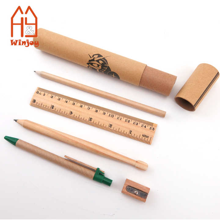 Fancy Latest Recycled School Office Stationery, China School Stationery Gift Set Eco Friendly Pen Ruler Pencil in Paper Tube