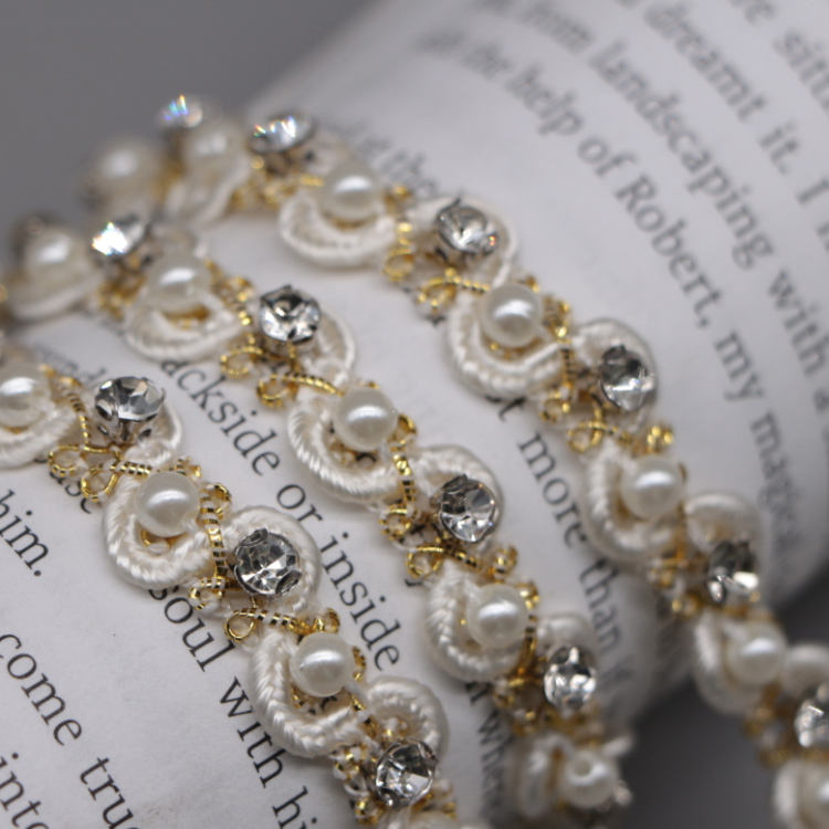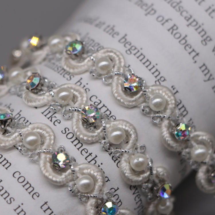 Elegante Colletto Decorativo a Forma di S con Strass e Perle, Bordatura in Pizzo per Decorazione Abiti