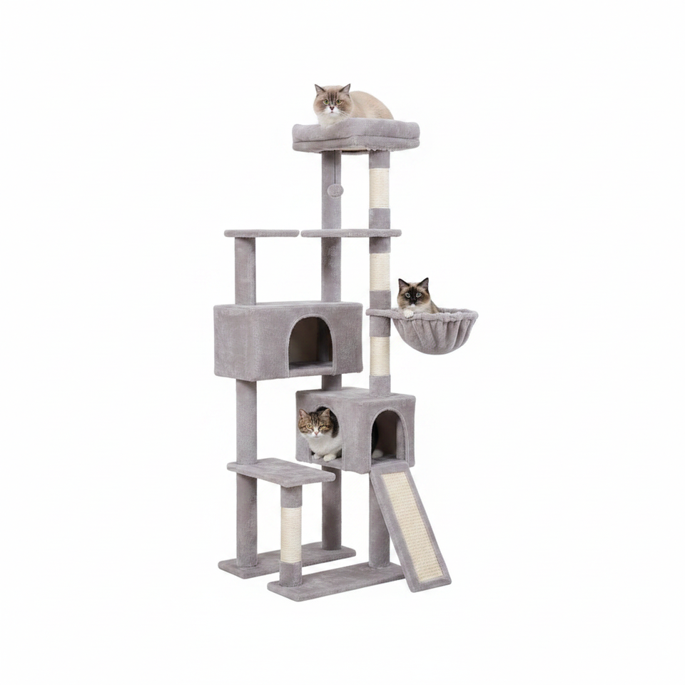 Fantastico Tiragraffi per Gatti in Legno, 60.60 Pollici, 4 Livelli, Resistente, da Interno, per 1-3 Gatti, Stile Moderno, Confezionato in Cartone