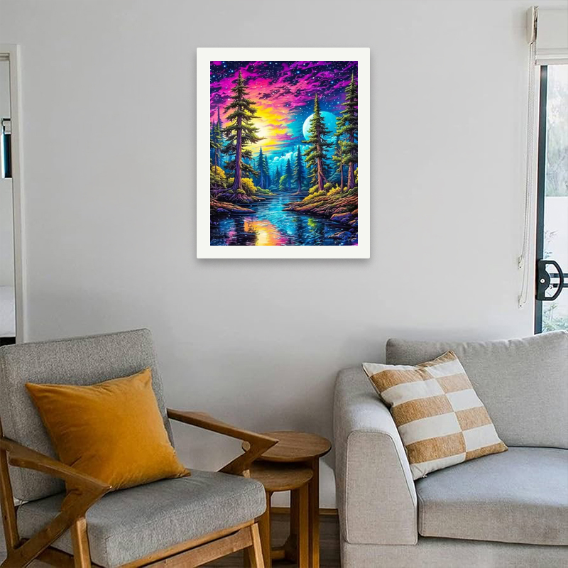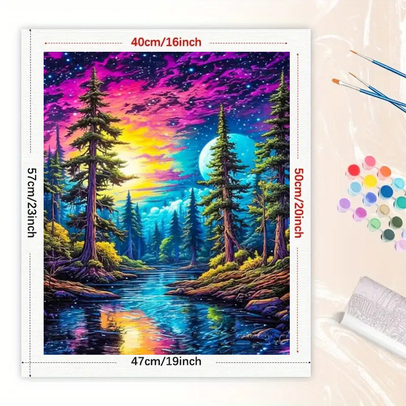 Kit di pittura Fantasy foresta con numeri per adulti: cielo vibrante e fiume da sogno 16x20 pollici, regali d'arte surreali senza cornice