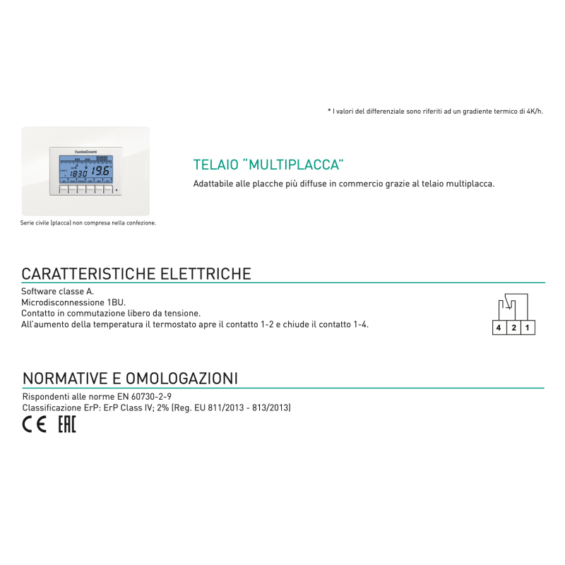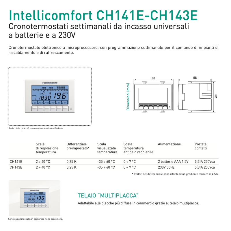 Fantini Cosmi CH141E Cronotermostato Settimanale Integrato per Sistemi HVAC