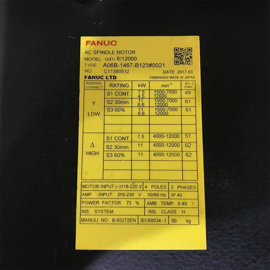 Fanuc Spare Parts AiT 8/12000 A06B-1467-B123 AC Spindle Motor