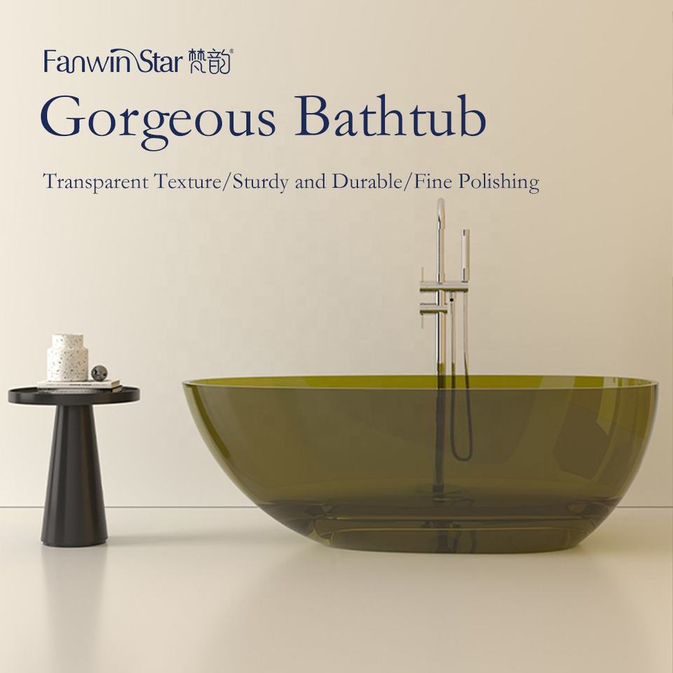 Fanwin colorful hotel bagno freestanding vasca da bagno in resina ambrata vasca da bagno trasparente vasca da bagno