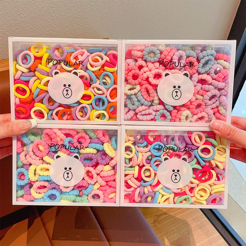 Fanyue Ice Cream 150pcs One Box High Quality Bear Hair Ties Durable Baby Girls Kids Hair Scrunchies Hair Rope Wholesale