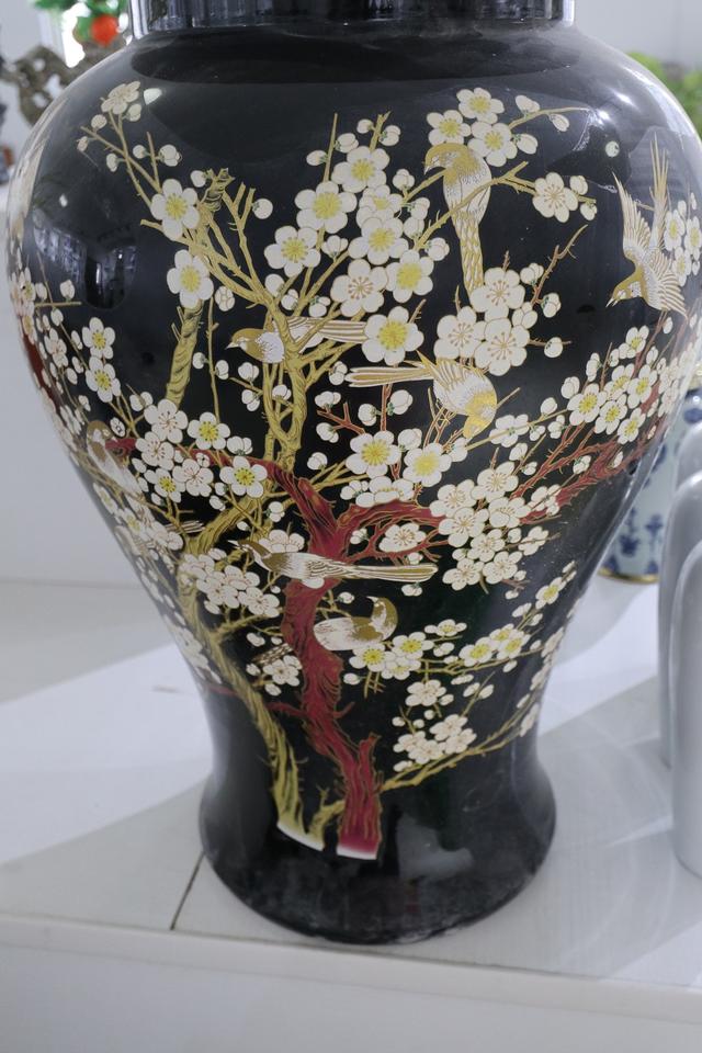 Farm House Design Black Home Decoration Accessories Modern Luxury Interior Ceramic Vase Gold Print Ginger Jar