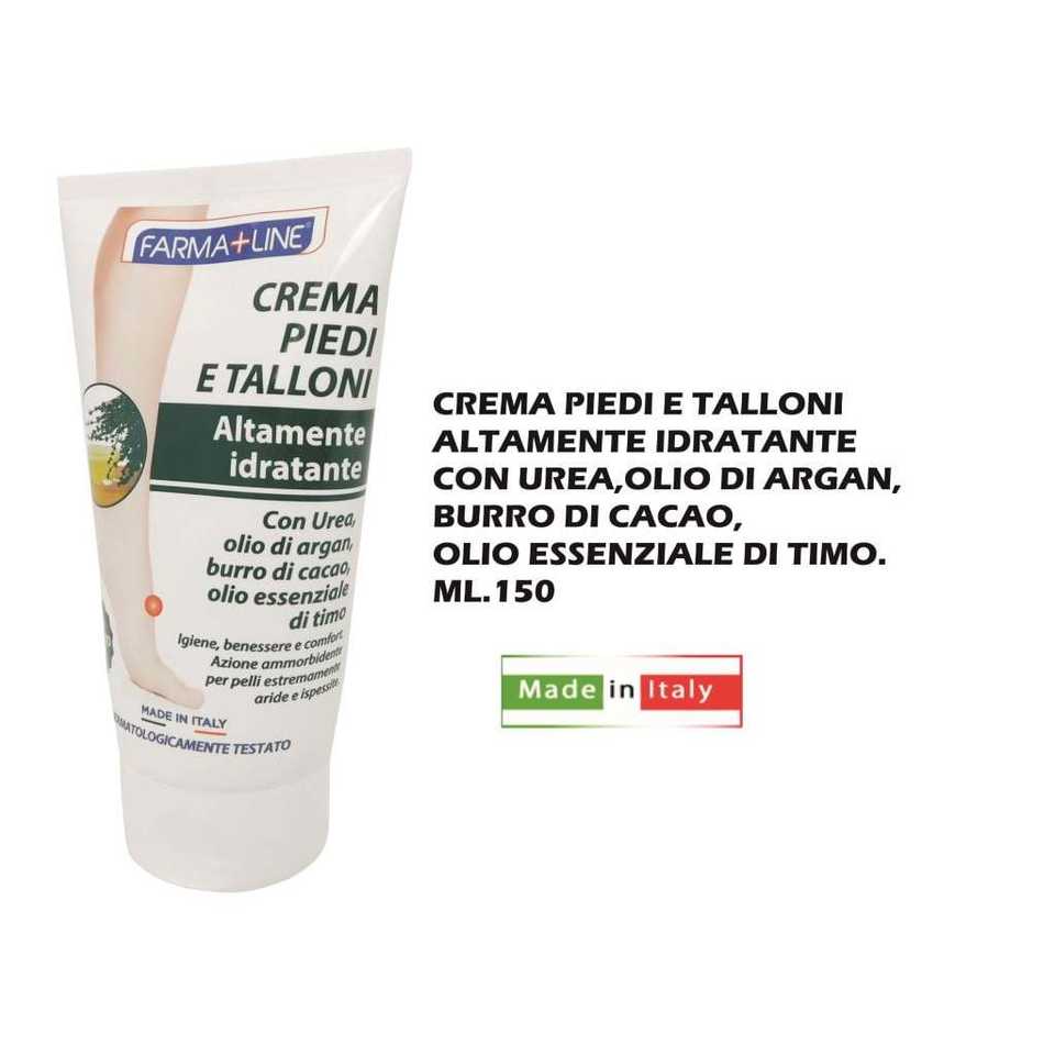 Crema Idratante per Piedi Farmaline 150 ml Anti-Screpolature con Urea, Timo e Olio di Argan per la Cura della Pelle dei Piedi