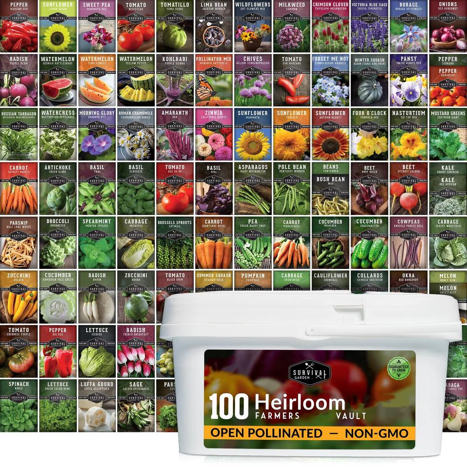 Kit di Semi di Ortaggi e Erbe Non-OGM da 100 Pacchetti per Coltivazione di Emergenza, Giardino di Sopravvivenza e Giardino della Vittoria