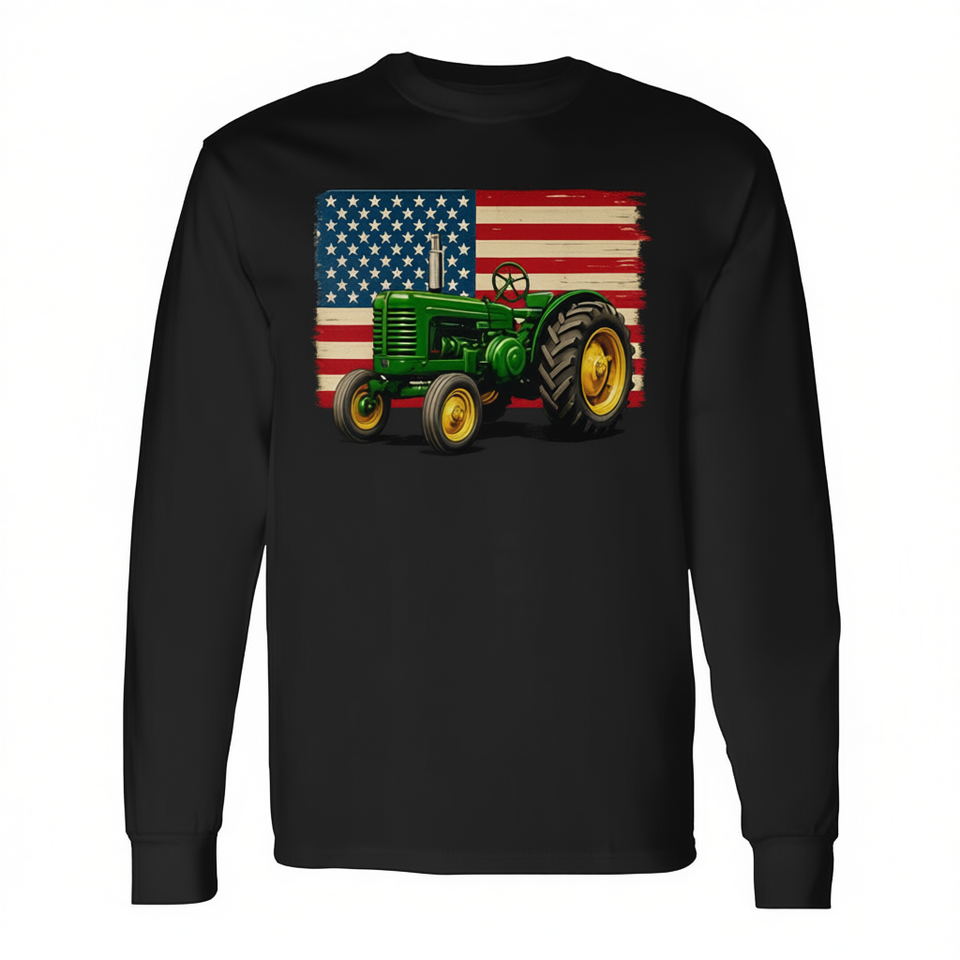 T-shirt a maniche lunghe Farmer Tractor Usa Flag 4th Of July