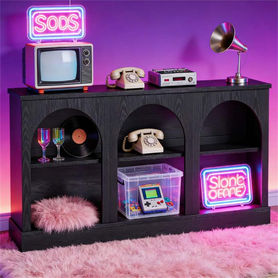 Consolle in Stile Rustico con Spazio Contenitore per Ingresso o Corridoio, Elegante Mobile Contenitore