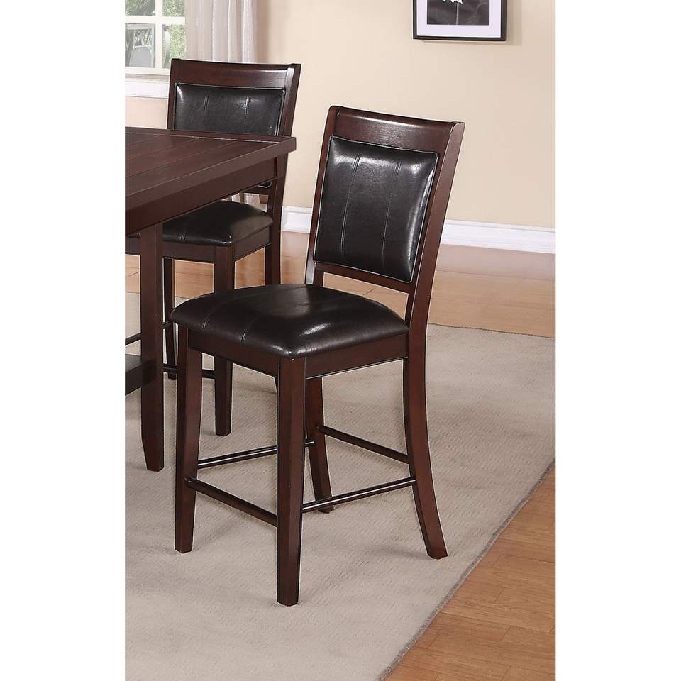Set di 2 Sgabelli da Bar in Stile Rustico, Marrone Scuro, in Ecopelle PU, Altezza Bancone, con Schienale e Poggiapiedi Imbottiti