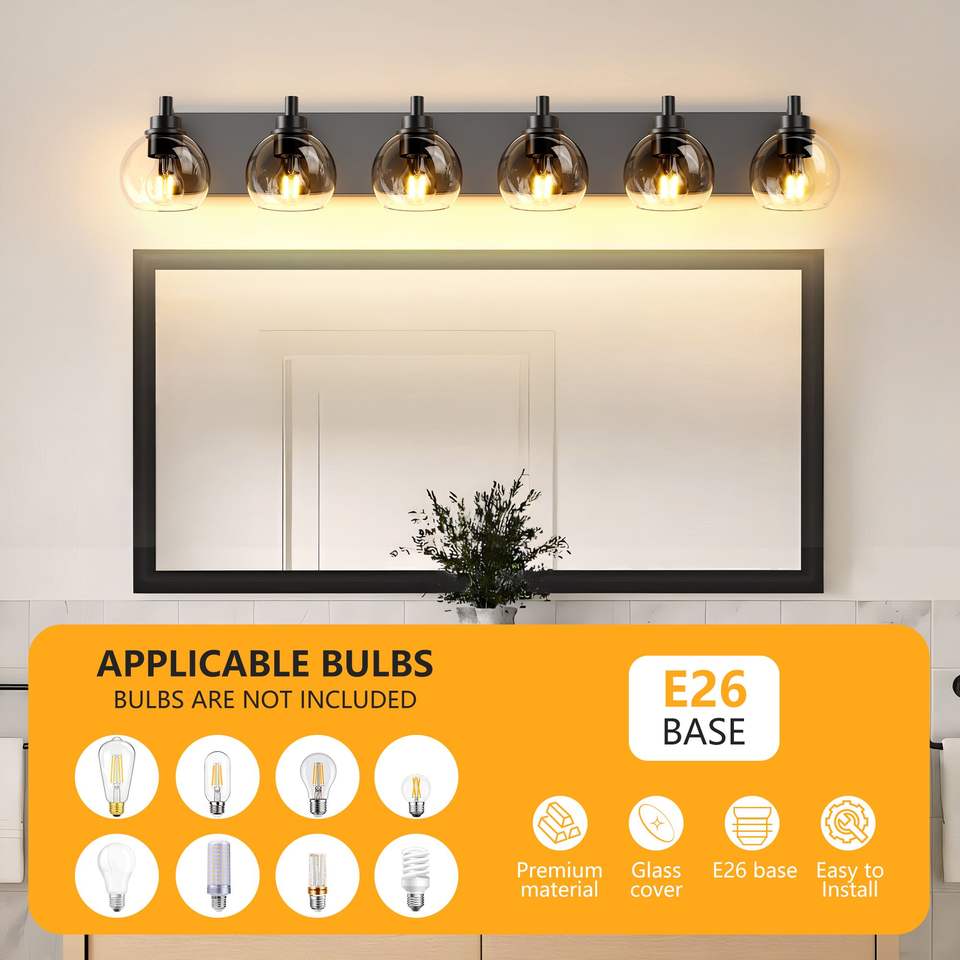 Lampada da Bagno Stile Rustico a 6 Luci, Applique da Parete con Specchio in Vetro per Vanità
