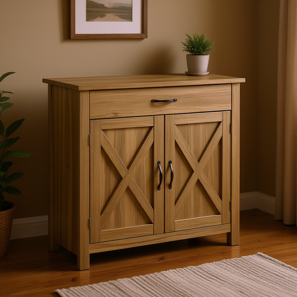 Credenza Stile Fattoria con Ante Scorrevoli Effetto Legno Naturale Modello D0100XFFKSJ per Cucina, Soggiorno o Ingresso