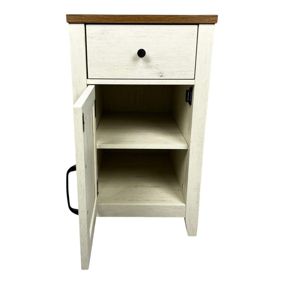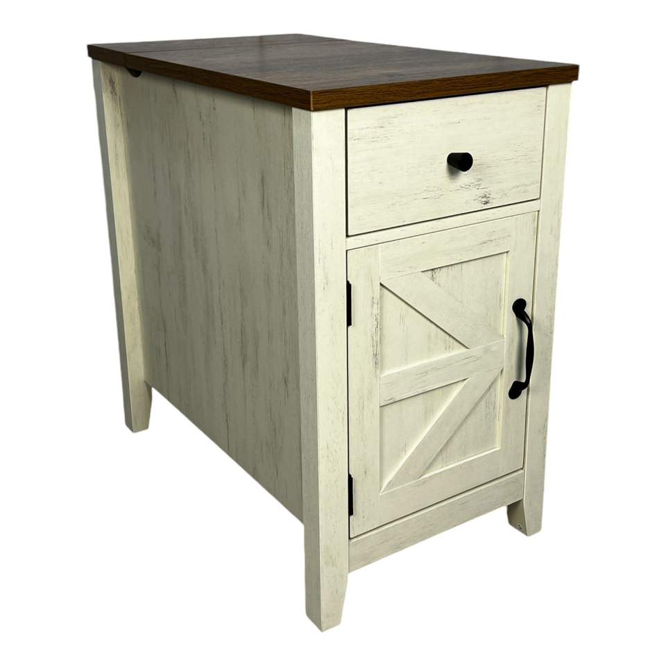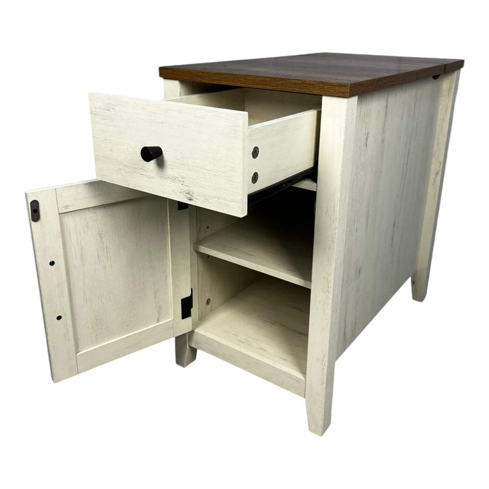 Comodino in Stile Rustico con Stazione di Ricarica, Cassetto con Anta Scorrevole e Spazio di Archiviazione per Camera da Letto e Soggiorno