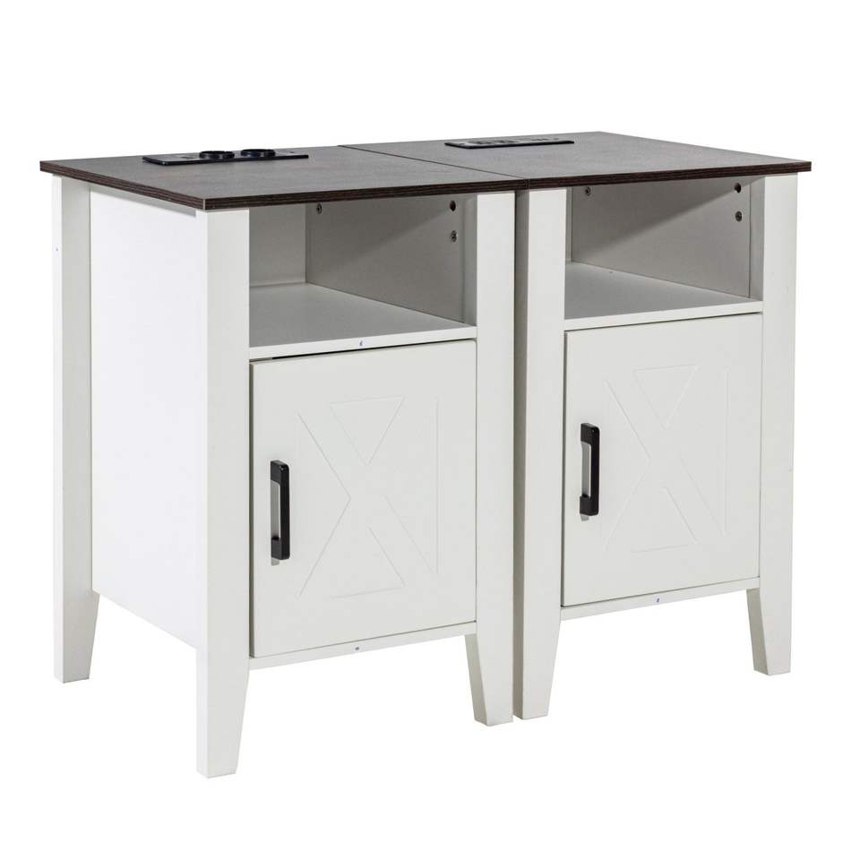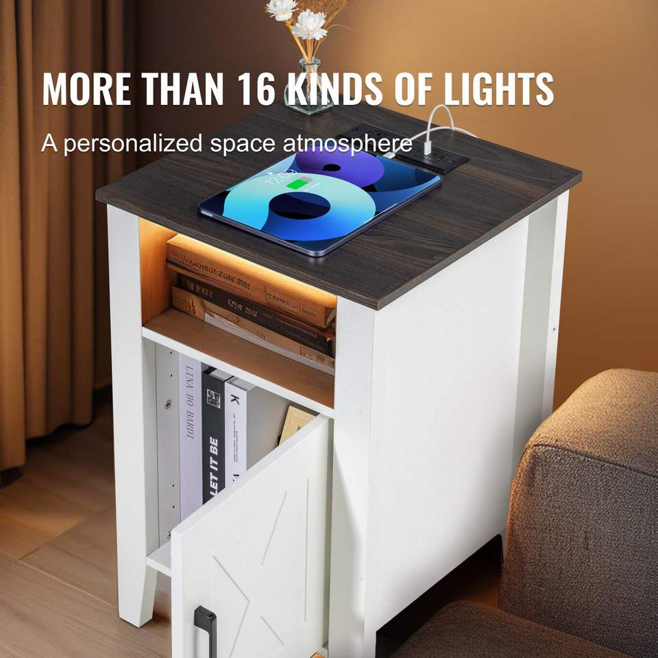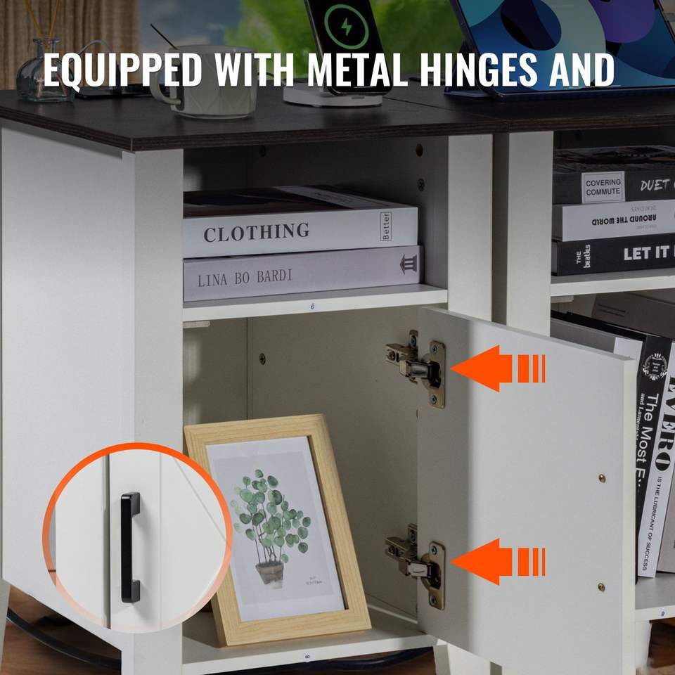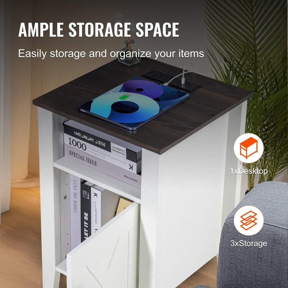 Set di 2 tavolini da comodino in stile rustico a 3 livelli con stazione di ricarica e porta USB, mobiletto contenitore con consolle