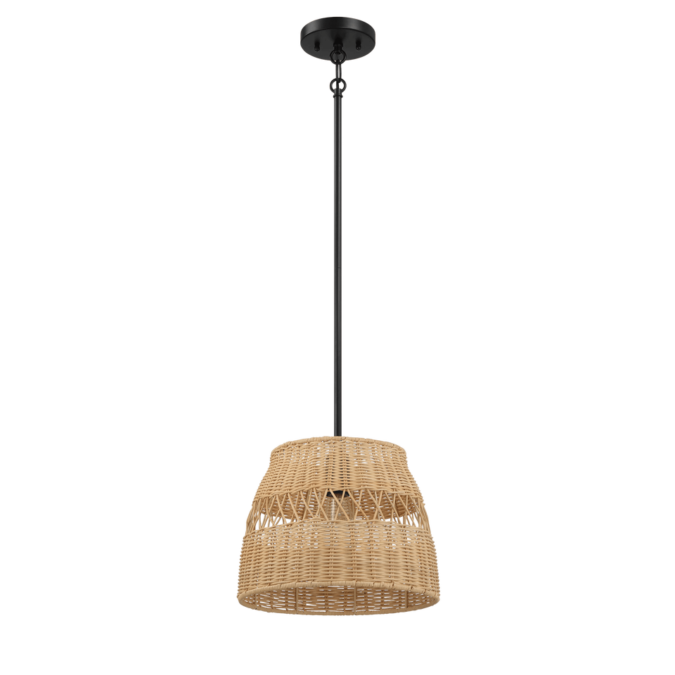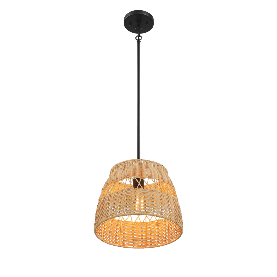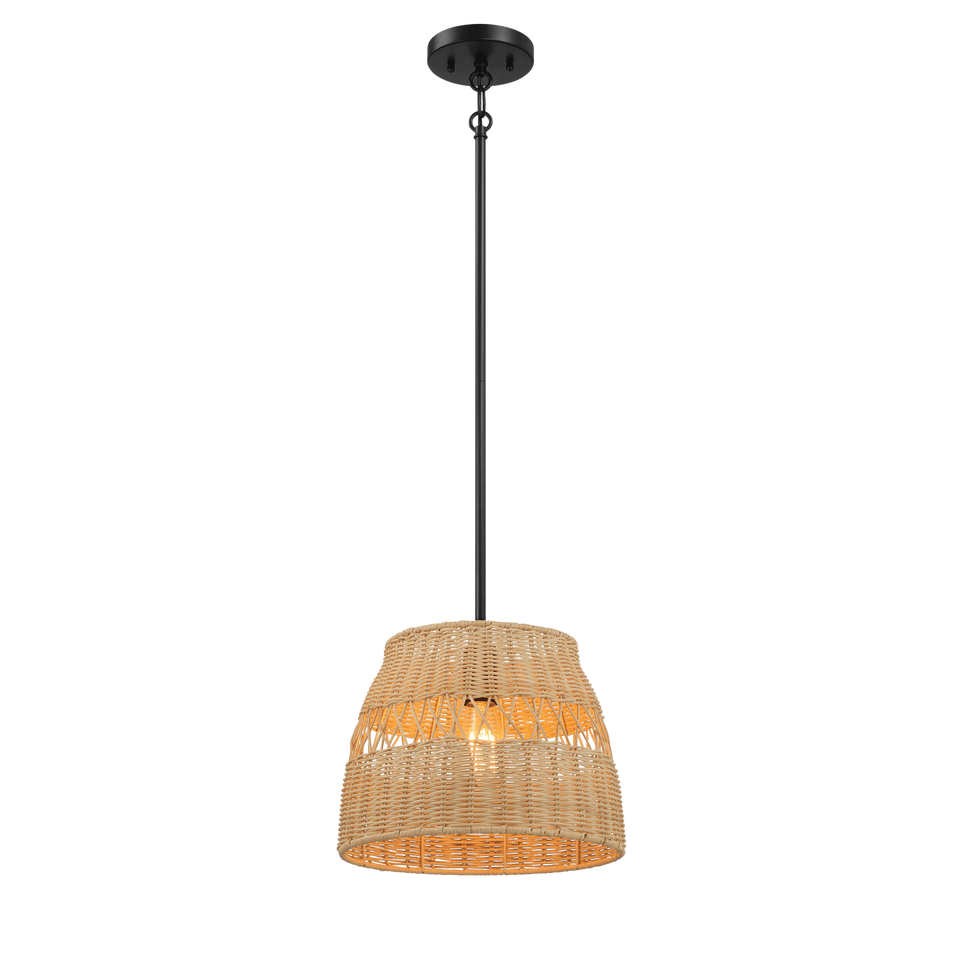 Lampadario a sospensione singolo in stile rustico con paralume in rattan e finitura in metallo nero - Essenza Lampadari e Luci a Sospensione