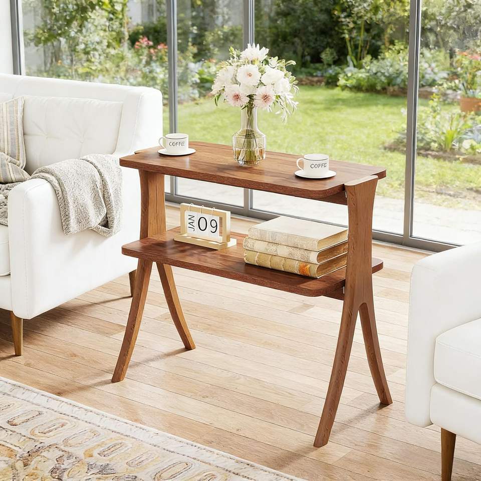 Tavolino in Legno Stile Fattoria con Ripiano a 2 Livelli, Arredamento per Soggiorno