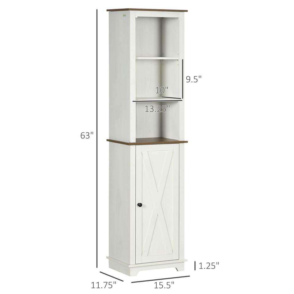 Farmhouse White Tall Bathroom Cabinet with Adjustable Door 15.5x11.75x63 Storage Farmhouse Style Furniture
