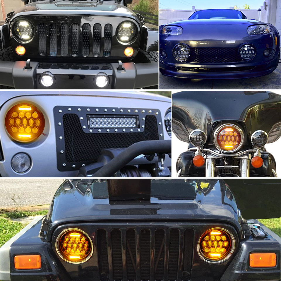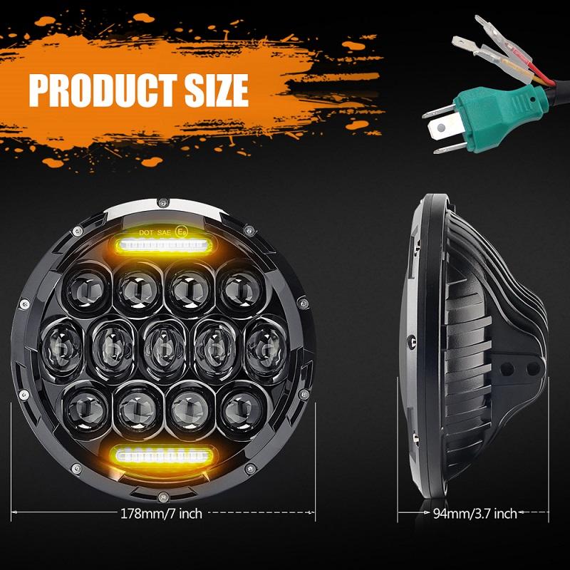 Faro LED 7 Pollici con Occhio d'Angelo Bianco, DRL Daymaker, Indicatore di Direzione Ambra, Rotondo Impermeabile 90W 75W per Motociclette