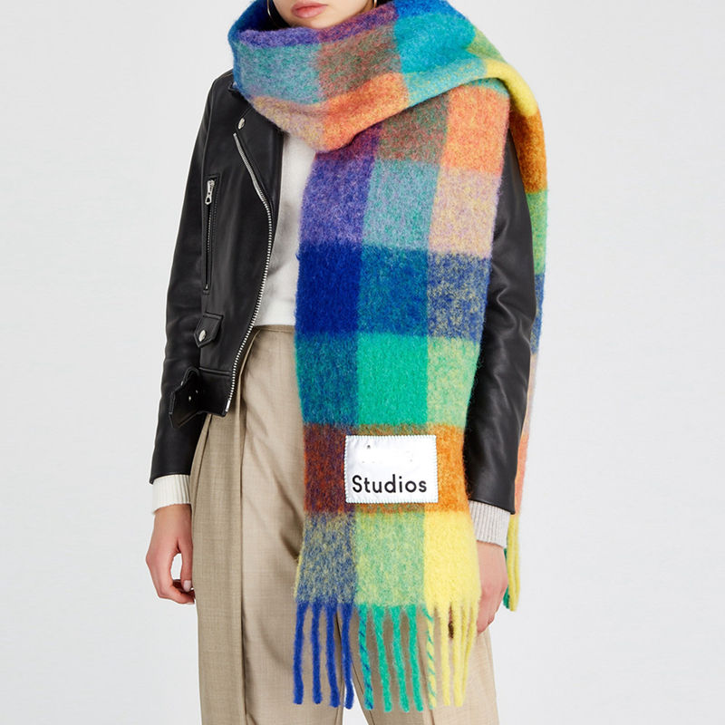 Fashion 100 Colors More Women Stock Large Oversize Plaid Winter Scarf Cape Oblong Chunky Fluffy Scarf With Tassel