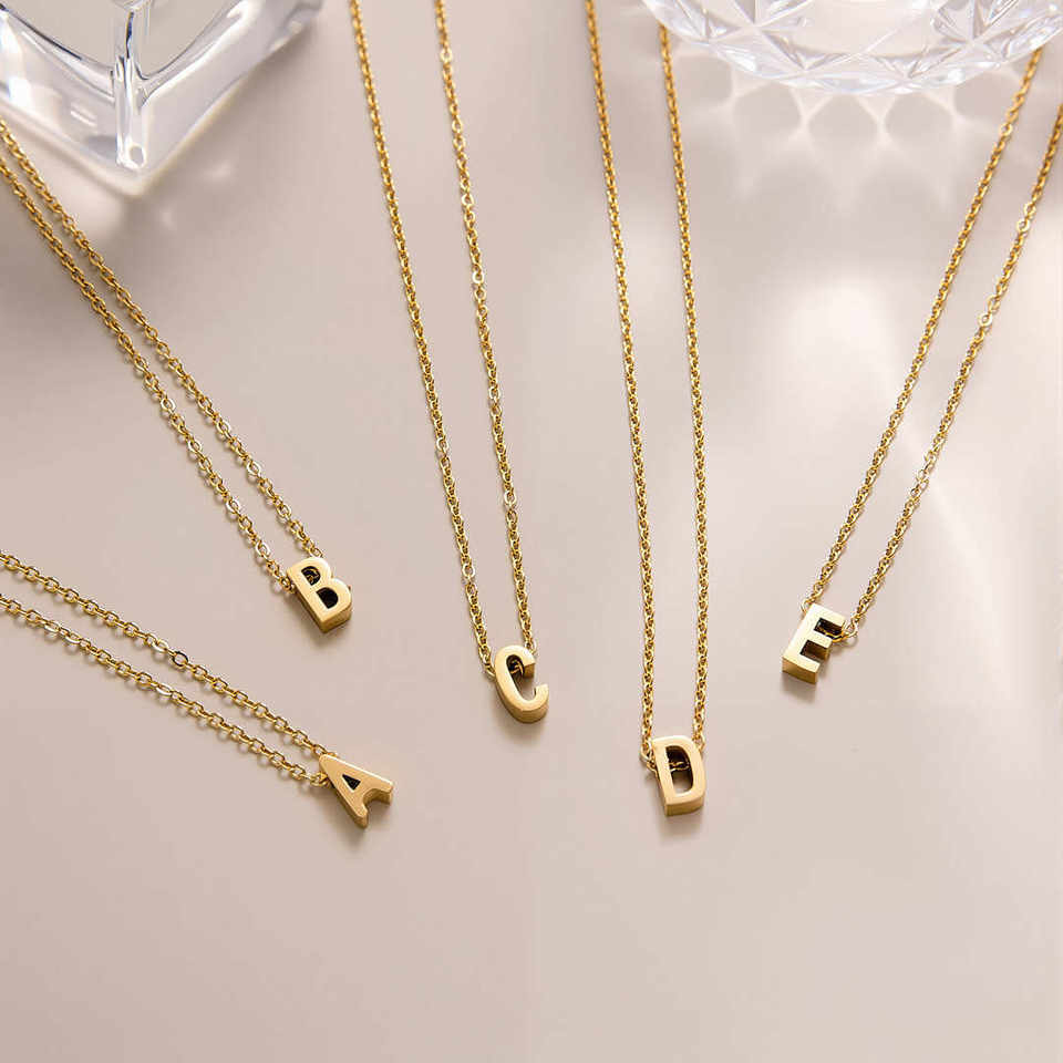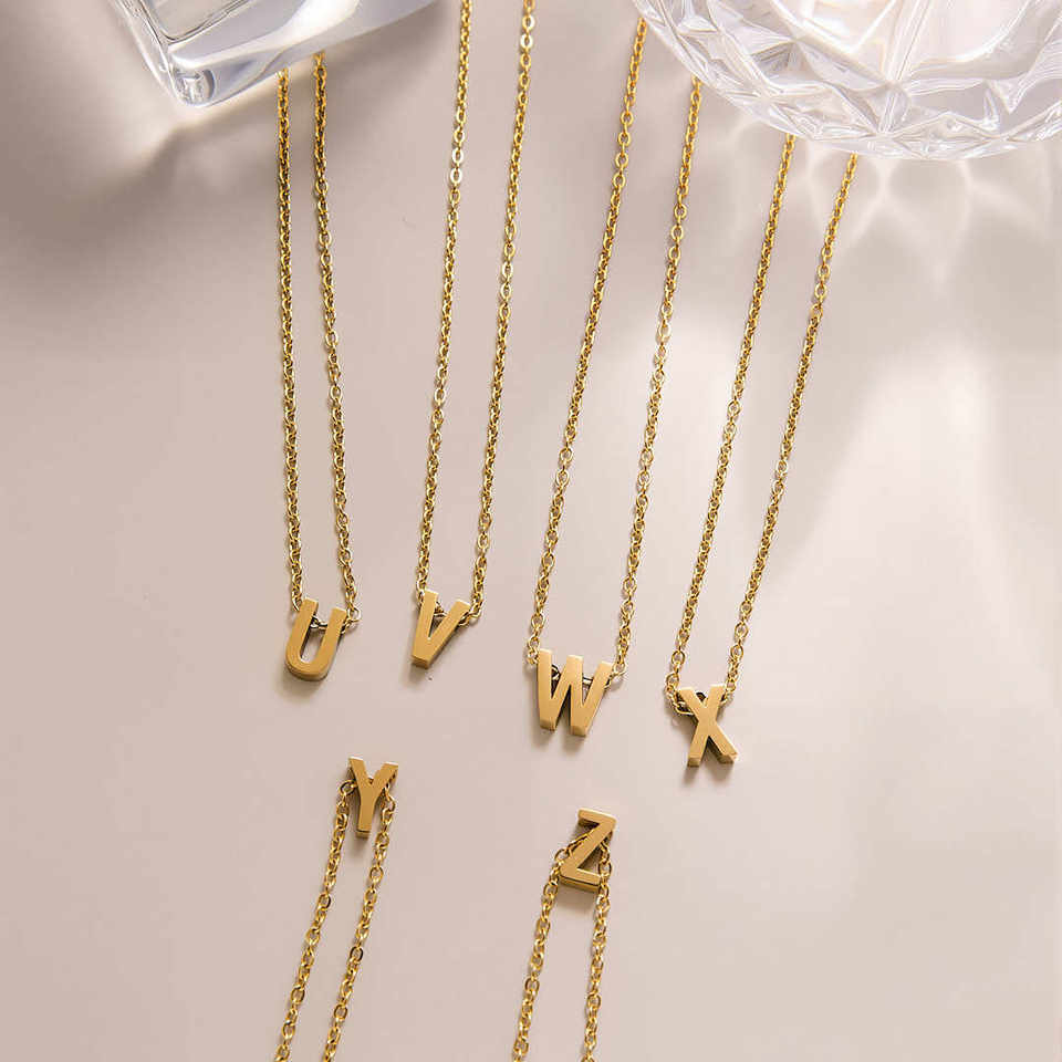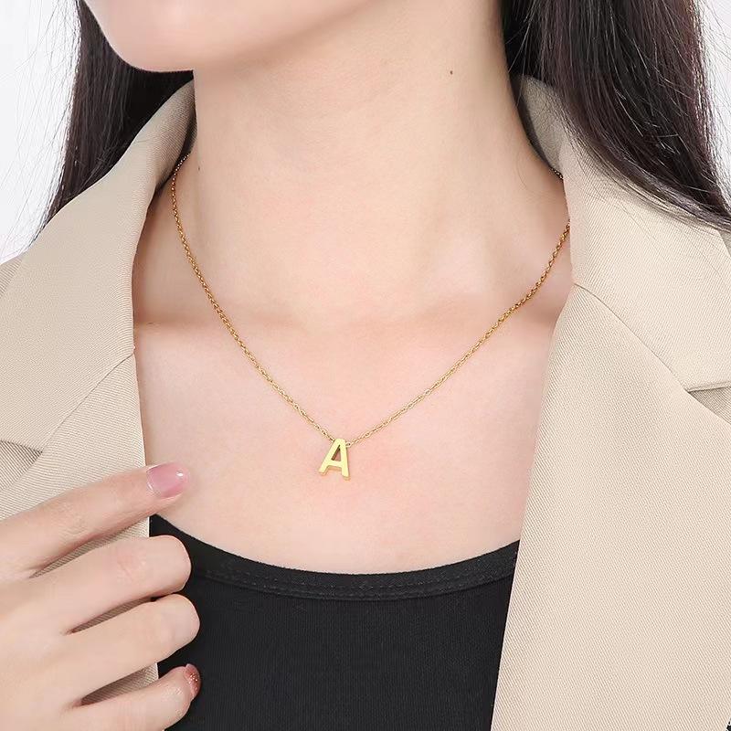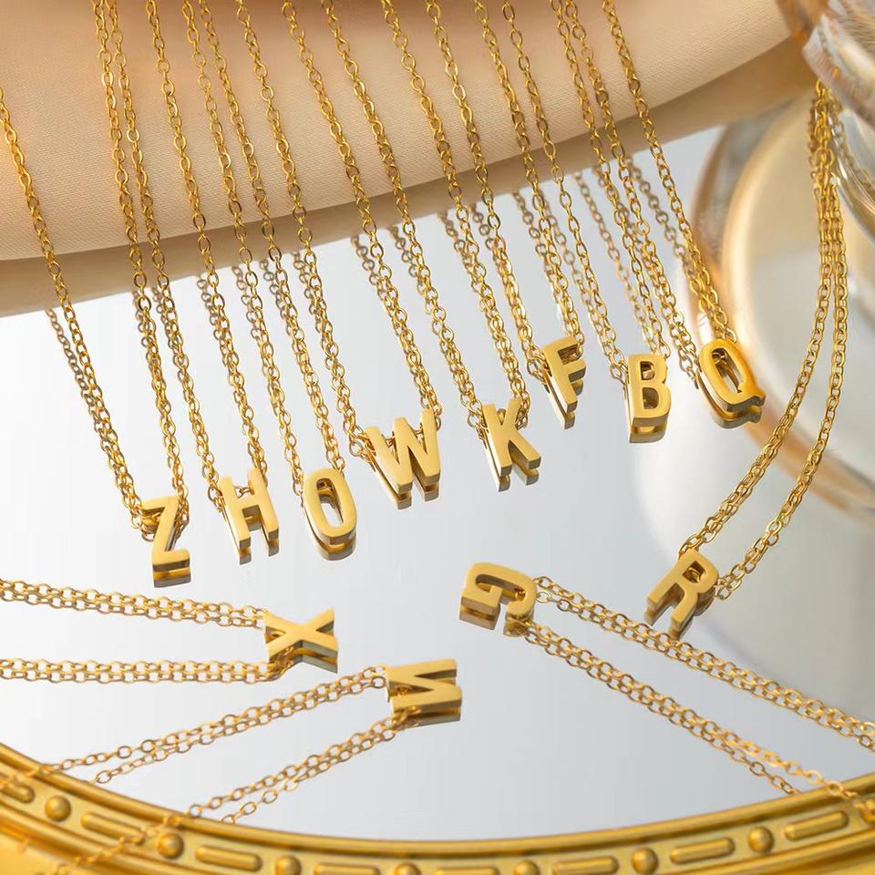 Collana Statement da Donna in Acciaio Inossidabile con 26 Lettere dell'Alfabeto Inglese, Placcata in Oro 18K, Semplice e Versatile, Non Sbiadisce, Catena per Clavicola