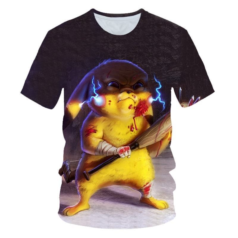 T-shirt Sostenibile con Stampa 3D di Pikachu per Donna/Uomo, Disponibile fino alla Taglia 4XL, Manica Corta Estiva con Scollo a V, Stile Casual Giapponese