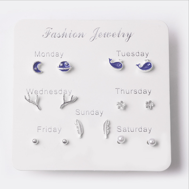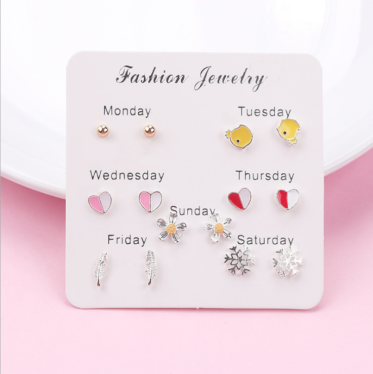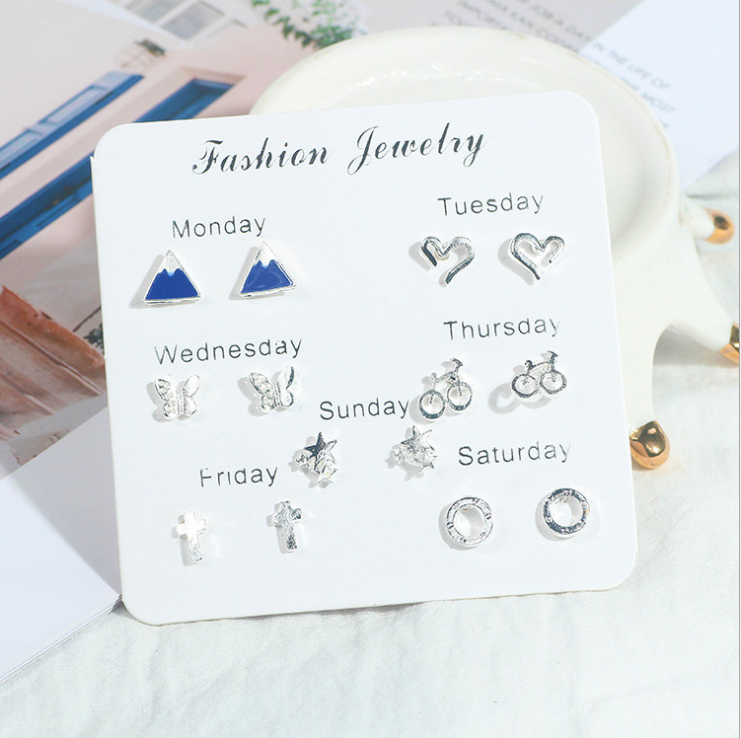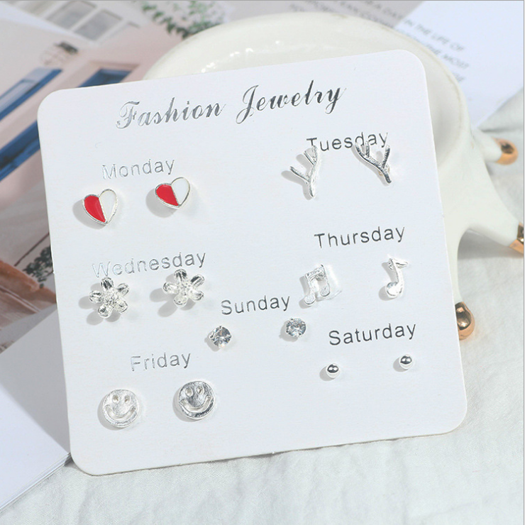 Moda 7 pezzi Set Design alla moda stile coreano tutti gli orecchini a bottone Piercing all'orecchio abbinati