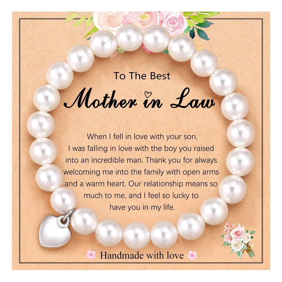 Fashion Adjustable 8 MM Pearl Beaded Mom Bracelet With Card Braided Pearl Heart Charm Bracelet 2025 Mother's Day Jewelry