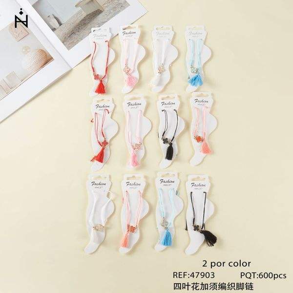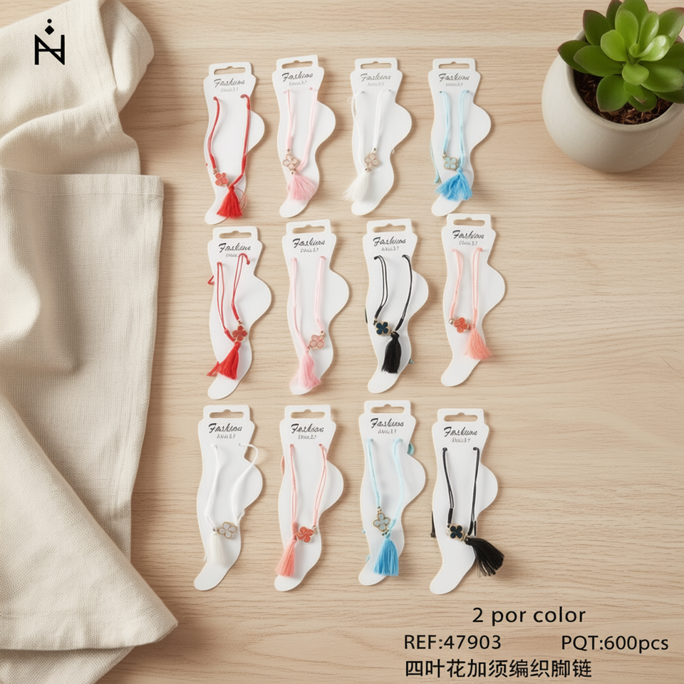 Catena alla Caviglia alla Moda con Nappine Intrecciate, 2 per Colore, 600 Pezzi, Design a Quadrifoglio