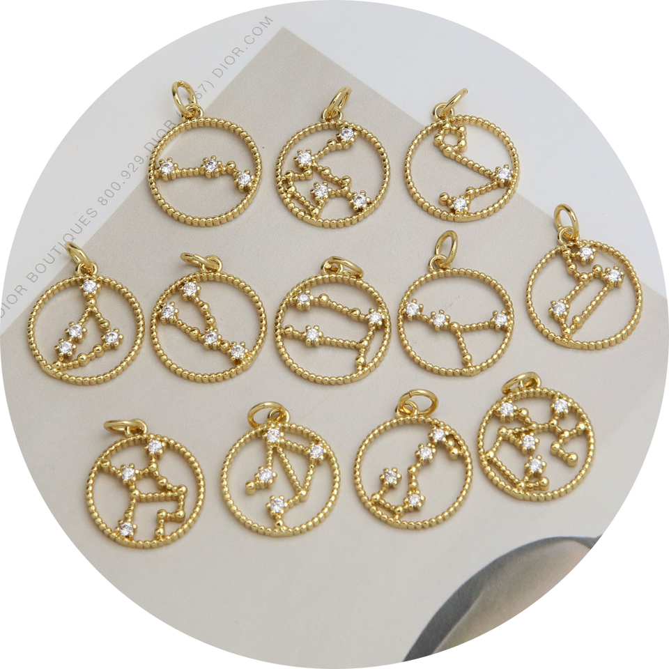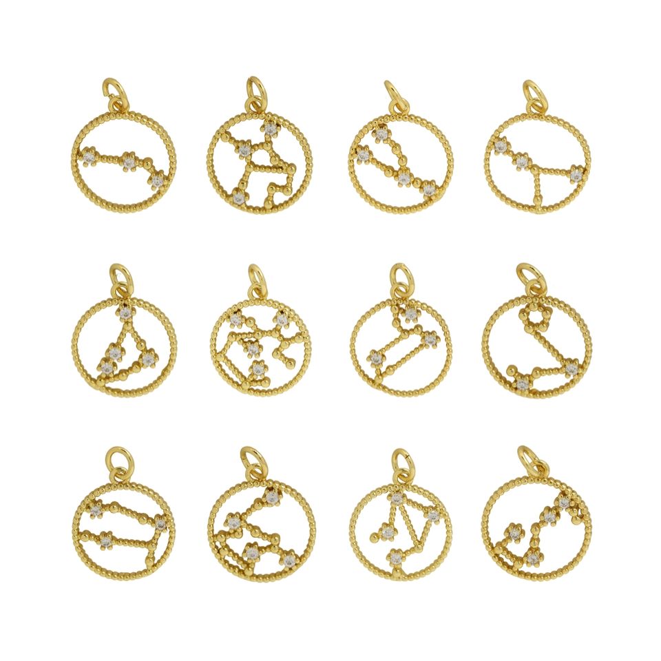 Fashion Astrology Star Zodiac Charm Pendant Round Coin Horoscope Sign Necklace Bracelet Jewelry Making Accessories Supplies