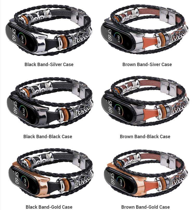 Fashion Beading Smartwatch Belt Leather Watch Bands Strap for Xiaomi Mi Band 10 8 9 6 5