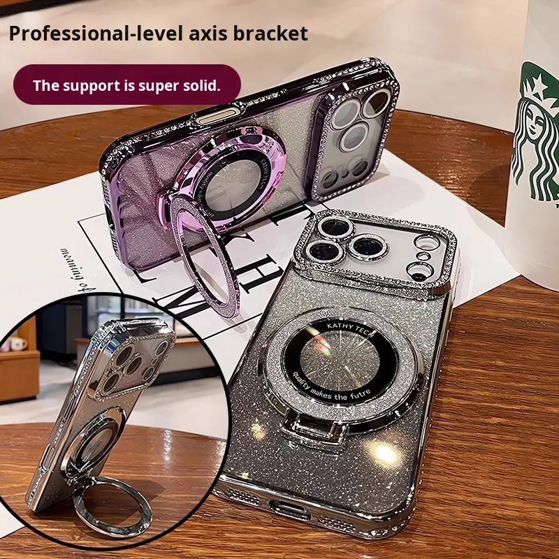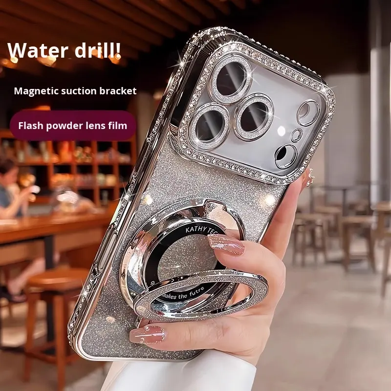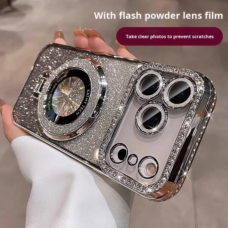 Cover protettiva per telefono cellulare con supporto magnetico con anello di moda glitterato custodia protettiva per Iphone 17 Pro Max 16 Plus 17 custodia
