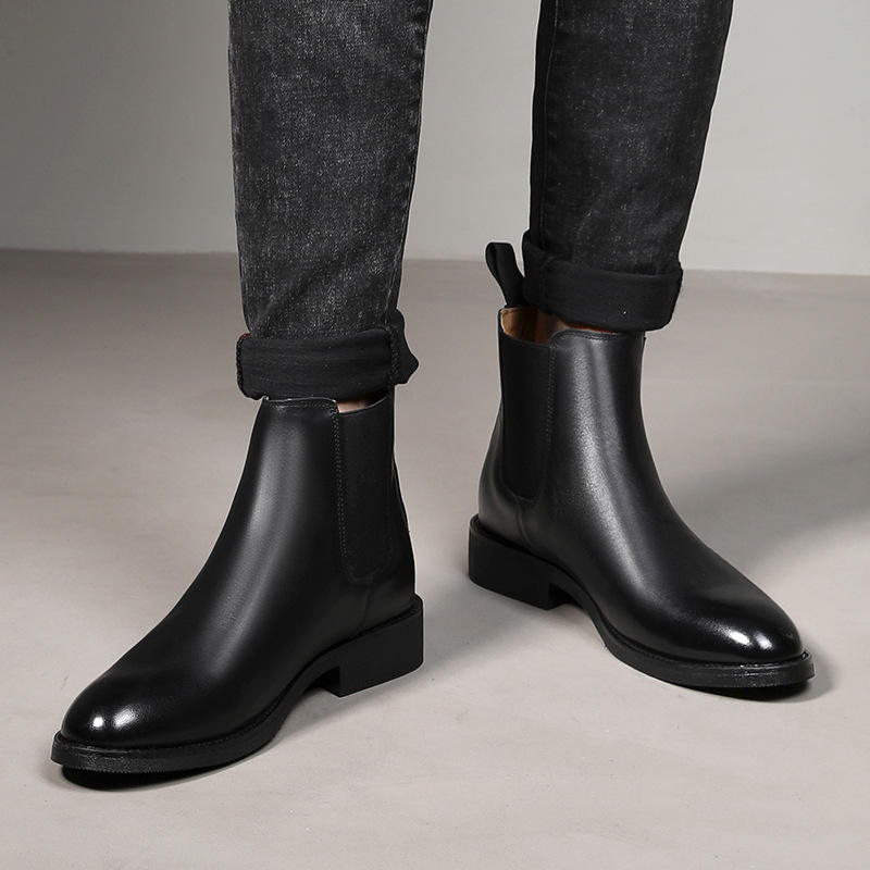 Fashion Boots Men's Cowhide Pointed Chelsea Boots with High Top Anti slip and Wear-resistant Fashion Shoes Classy Leather Boots