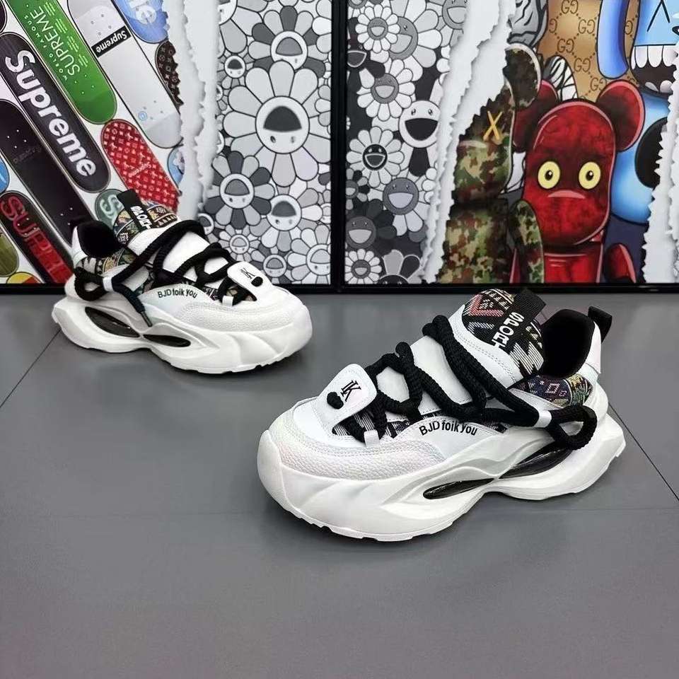 Sneakers Chunky con Punta Affusolata Stile Cinese di Marca alla Moda, Nuove Scarpe da Uomo Primavera 2025 con Lacci, Stampa e Ricamo, Suola Spessa