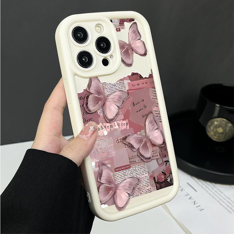 Moda farfalla rosa rosa modello custodia per telefono in TPU protezione 360 antiurto per iPhone 16 15 Pro Max 14 12 11