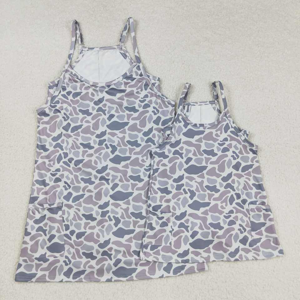 Fashion Camouflage Mommy and Me Women's Tennis Dress Bodysuit Lined New Designs Kids Athletic Wear Yoga Adult's Holiday Dress