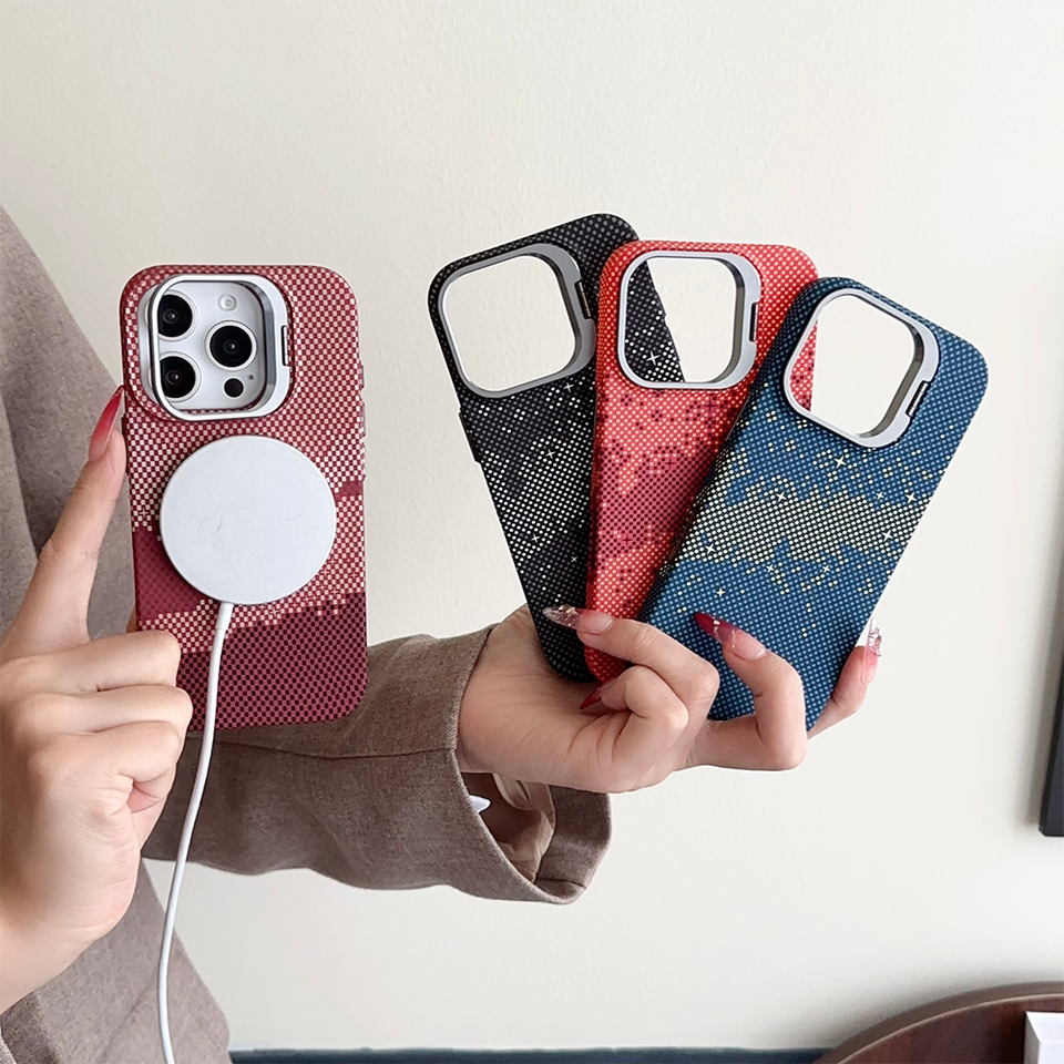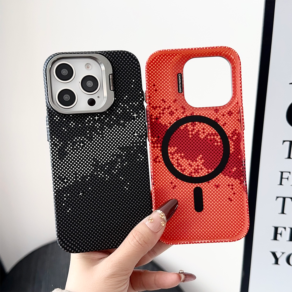 Fashion Carbon Fibre Texture Magnetic Phone Case for iPhone 17 16 15 14 Pro Max With Invisible Bracket Shockproof PC Hard Cover