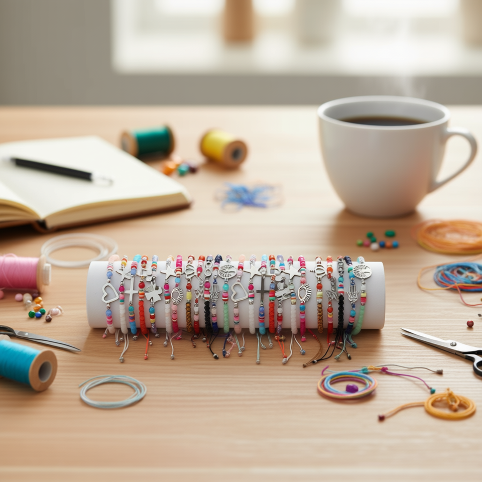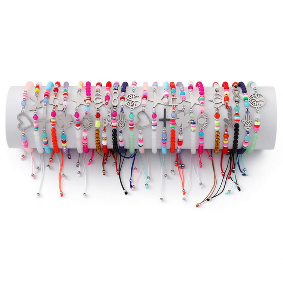Braccialetti Charm alla Moda, Set Regalo di Gioielli con 2400 Pezzi di Perline e Charm in Colori Assortiti, Stili Misti Ref44834