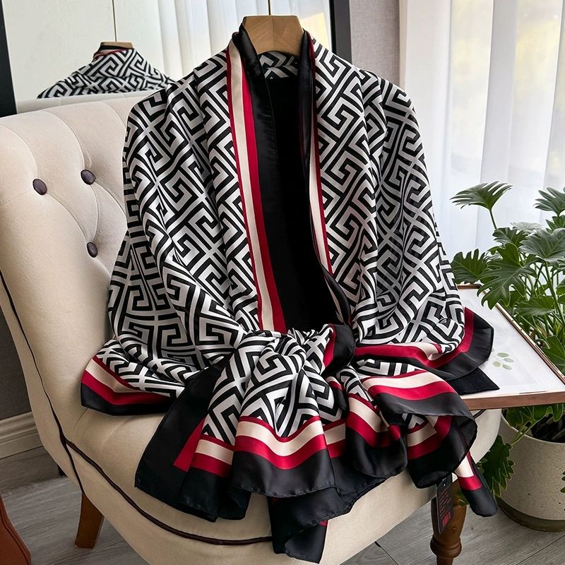 Sciarpa di seta stampata a quadri alla moda per le donne Foulard di marca di lusso femminile copricostume da spiaggia nero scialli e sciarpe da donna