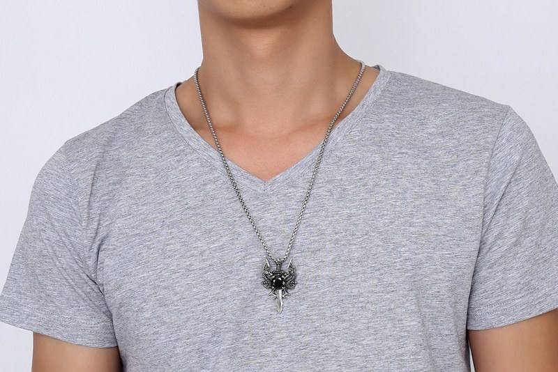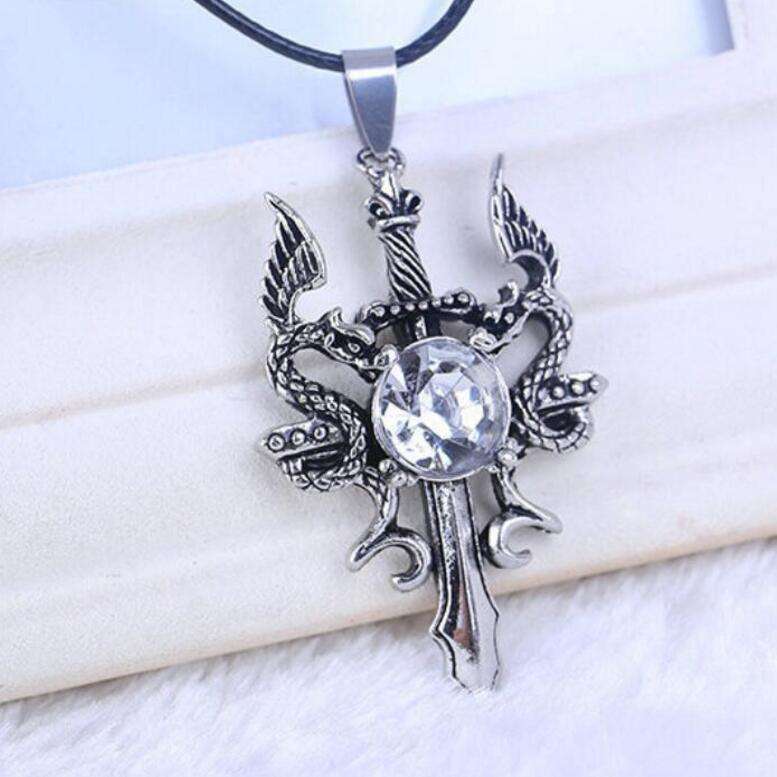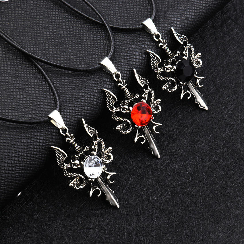 Collana con Pendente a Forma di Spada di Cristo in Zircone, Gioiello Punk con Corda in Pelle, Collana con Drago per Uomo e Donna
