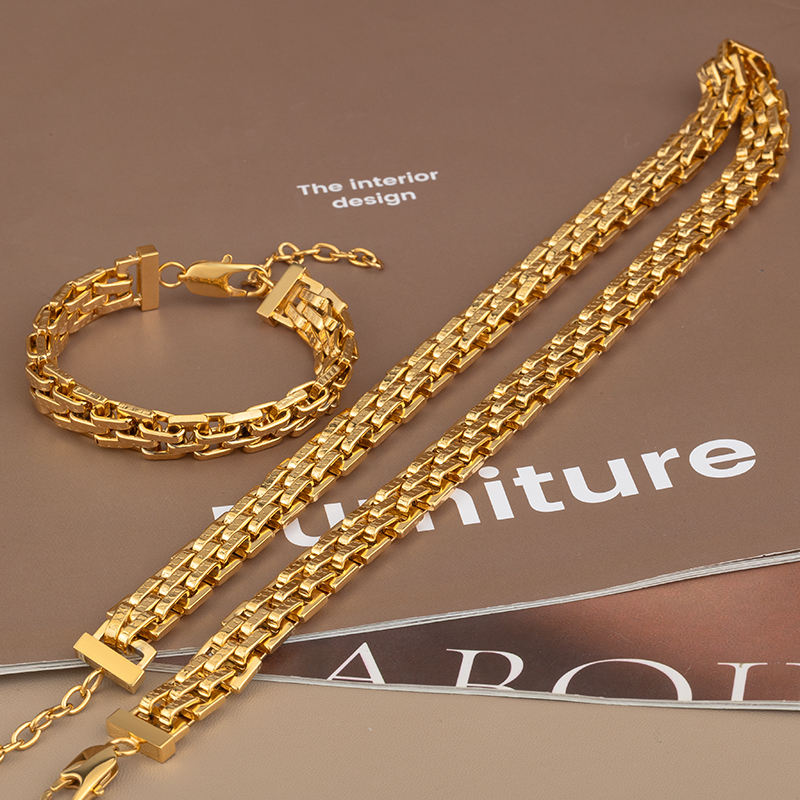Fashion Chunky Watchband Men Chain 18K Gold Plated Stainless Steel Male Mesh Band Chain Waterproof Necklace Bracelet Jewelry Set
