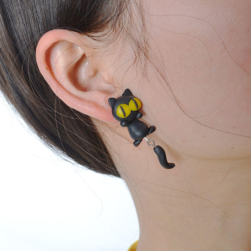 Fashion Creative Animal Cute Cat Clay Stud Earings Handmade Polymer Clay Earrings