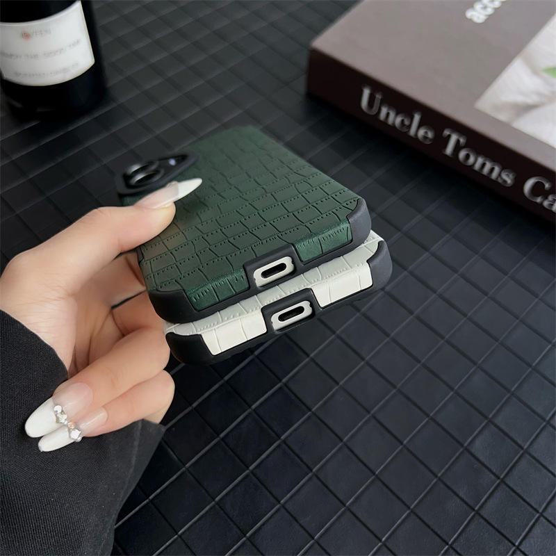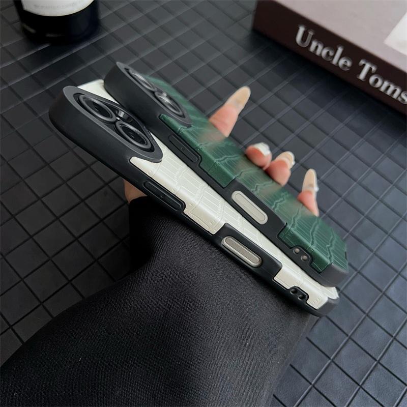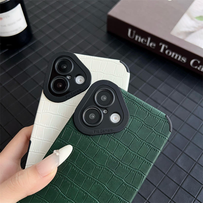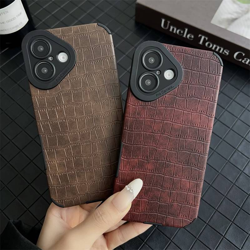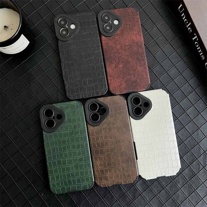 Custodia di protezione per lenti in pelle sintetica moda Croco Texture per iPhone 16 15 14 13 12 11 Pro XR X XS Max 8 7 Plus Cover in TPU morbido opaco